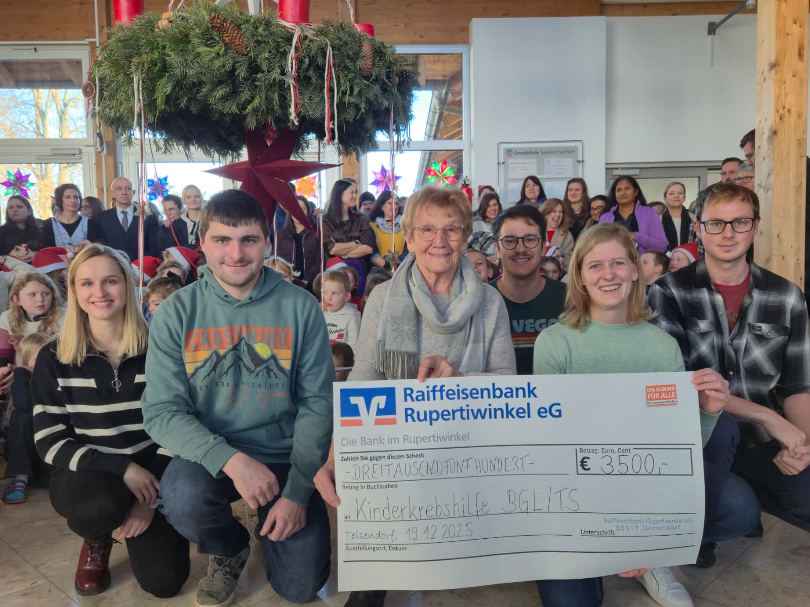 Am 19.12.2025 konnte der Spendenscheck in der Grundschule Surheim von 3.500,00€ übergeben werden. Hiervon waren 300,00€ vom Nikolaus der Freiwilligen Feuerwehr Saaldorf.